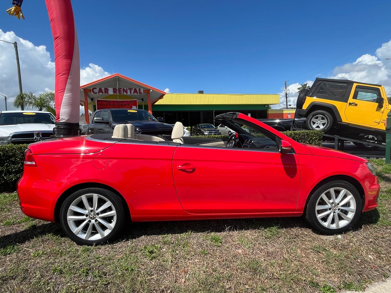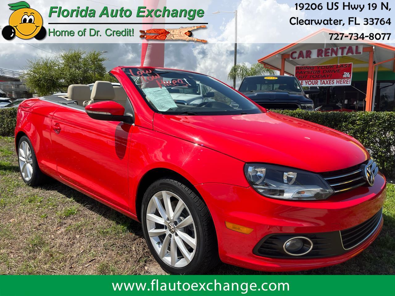 Picture yourself cruising Florida's sunny highways in this stunning one-of-a-kind 2016 VW Eos 2.0T – a true retractable hardtop convertible that transforms from sleek coupe to open-air freedom in seconds. With just 86,000 low, well-maintained miles, this beauty is in exceptional shape inside and out, featuring vibrant red exterior over luxurious tan leather interior and sharp alloy wheels.